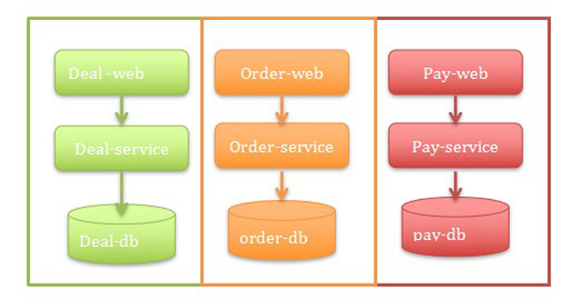 所以,2014年deal-service就做了很大的重构,大系统做小,把商品详情系统拆成了无数小服务,比如库存服务、价格服务、基础数据服务等,这样就解决了商品详情页的问题。所以从2014年开始低订单系统的压力就来了,2014年10月起,订单系统、支付系统也启动了全面微服务化,经过大约1年的实践,订单系统、促销系统、支付系统这3个领域后的服务总和都快上百个了,后面对应的数据库有20多个,这样能支撑到每日订单量百万级。