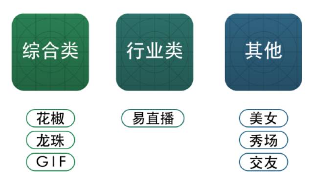 这就是对我们现在接触到的这些行业做了一些分类,有综合类的,就是用户产生内容,以娱乐为主,不对用户产生的内容做强的划分。会有一些建议,但是不会强制要求。还有一部分行业性比较强的,像财经、体育,教育这些类。