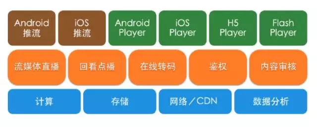但是在多媒体的这部分,门槛很高,以前做点播业务,像两年前我在做媒体云的时候,当时都是点播的业务。做到后面,我觉得点播业务其实并不像想象的那么难,你想你有一个稳定的存储,找一家靠谱的CDN,然后找一个大概能用的播放器就做出来了,这有什么难的呢?你可以找云服务公司,也可以找外包,或者你自己招一个人都能做。但是现在发现到了移动,尤其是3月份移动直播火起来之后,这个门槛突然变高了。因为内容产生方变成了移动端,后面我会详细说。