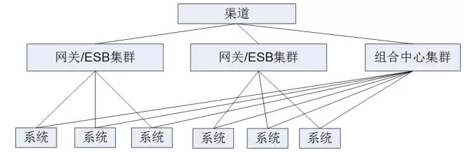 上图中,通过将业务按条线进行不同的分区,每个分区用独立的ESB集群进行集成。这样,每个前端系统调用后台服务的时候,就可以把访问压力分散到不同的分中心上,从而通过增加资源来提高访问效率。