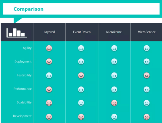敏捷性:总体敏捷性是指对不断变化的环境作出反应的能力。由于其整体风格(Monolith)的性质,可能会变得难以应对通过所有层的变化,开发者需要注意依赖性和分层分离。