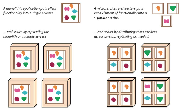 这类整体应用程序当然能够切实起效,但人们却逐渐发现其中存在着诸多弊端——特别是在将大量应用程序部署在云环境当中的情况下。由于变更周期被大量集中于一处——即使仅仅指向应用程序中的一小部分,单一变更亦要求我们对应用程序整体进行重构与重新部署。随着时间推移,我们往往很难保证理想的模块化结构,这意味着本应只影响单一模块的变更往往会扩散至该模块之外。规模伸缩亦要求我们对整体应用程序进行规模调整,而非单纯为其中必要的部分进行资源扩容。