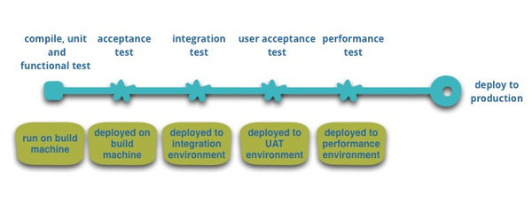 大部分利用微服务机制构建的产品或者系统都是由具备丰富的持续交付及其前者——持续集成——经验的团队所完成。通过这种方式构建软件的团队能够充分发挥基础设施自动化技术成果的潜在能力。我们可以将整个流程整理成以下图表: