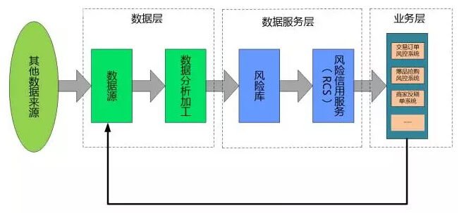 其系统内部既包含了面向业务的交易订单风控系统、爆品抢购风控系统、商家反刷单系统,在其身后还有存储用户风险信用信息及规则识别引擎的风险信用中心(RCS)系统,专注于打造用户风险画像的用户风险评分等级系统。