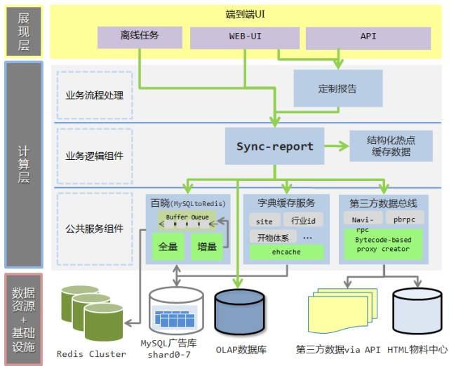 engine中查询数据,然后通过merge字面数据,提供排序,过滤,分页功能。围绕sync-report抽取了多个不同维度的缓存,保证了核心报表服务的高性能,同时上层,不管是web-ui还是api,都复用sync-report,这样上层就会很薄,不用再管那些复杂的查询逻辑,sync-report作为标准、规范的技术解决方案,做到了统一复用与专职专用,加速了研发效率和交付。