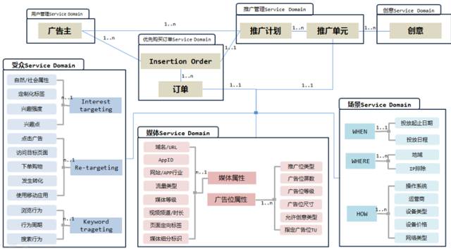 然后各个投放产品进行的功能矩阵划分的标准化设计,以这些为基础,就可以有理有据的进行服务规划,抽象分解出来的服务域高内聚,职责非常清晰,服务内的实体也是建模的,如下图所示,每个包都是一个微服务。