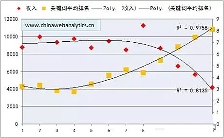图7:销售收入和关键词平均排名的关系