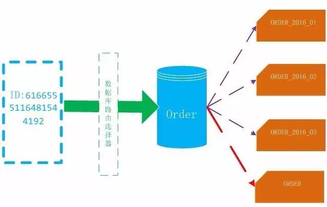 当按订单号查询时系统首先根据订单号长度的不同,来选择是路由到新的切分订单表,还是路由到原订单表。因为新主键ID会包含日期信息,系统会根据主键解读出日期信息,根据月份的不同来选择该数据库对应的月份表,如果读取不出日期信息就可以判断出为原订单表。