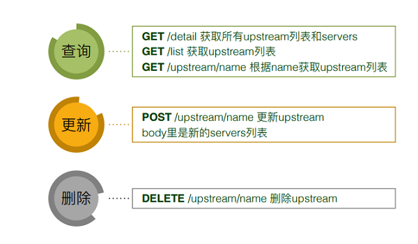 它能干什么事情呢?可以通过GET接口查询当前的一些信息;POST可以更新上游;也能通过Ddelete删除上游。