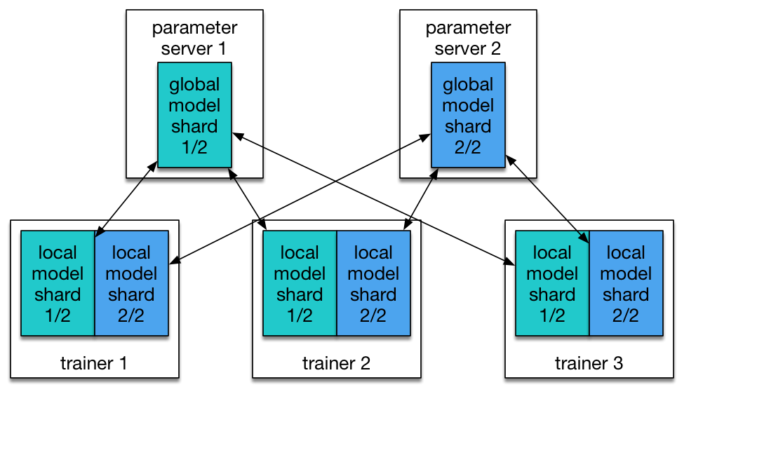 PaddlePaddle天生就支持分布式训练。在PaddlePaddle集群中有两个职责:参数服务器和训练者。每个参数服务器过程维护一个公共模型的碎片。每个训练者有它自己本地的模型拷贝,并用自己的本地数据去更新这个模型。在训练过程期间,训练者发送模型更新到服务参数服务器,参数服务器负责收集这些更新,以便训练者能够用全局模型同步他们的本地拷贝。