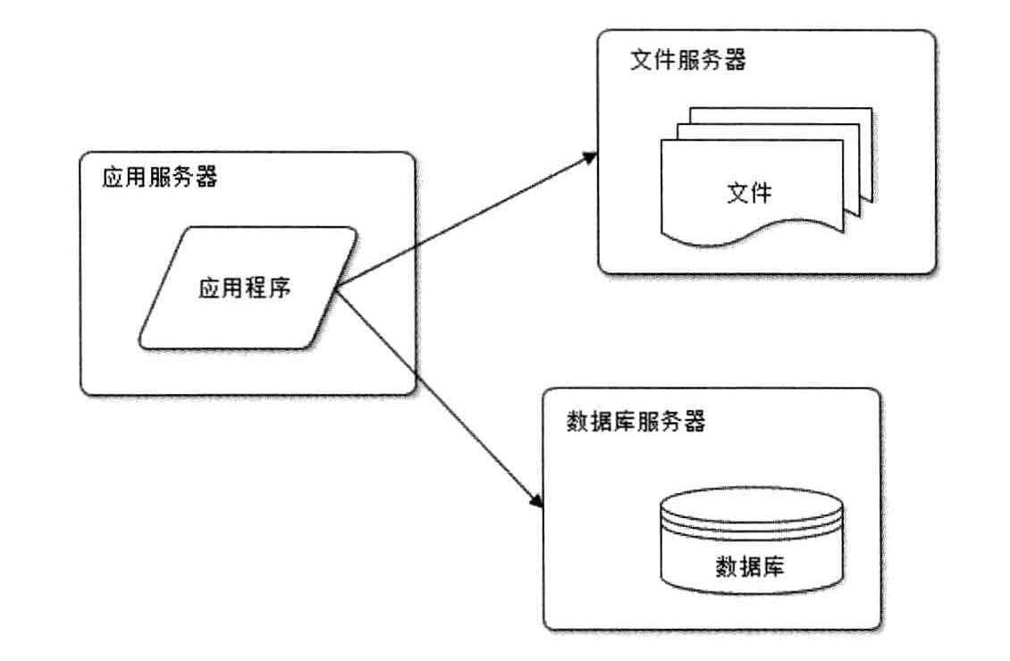 应用程序、数据库、文件等所有的资源都在一台服务器上。