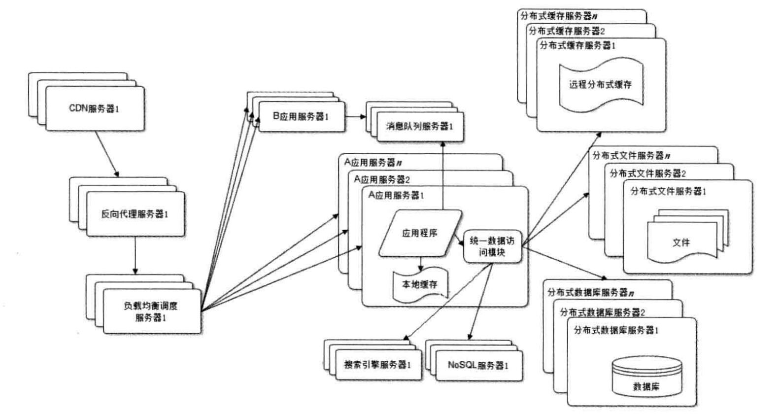 NoSQL和搜索引擎:源自互联网的技术手段,对可伸缩的分布式特性具有更好的支持。应用服务器则通过一个统一数据访问模块访问各种数据,减轻应用程序管理诸多数据源的麻烦。