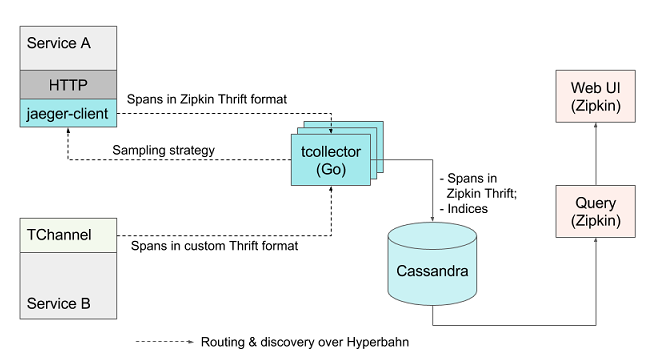 Jaeger的早期架构依然依赖Zipkin UI和Zipkin存储格式。