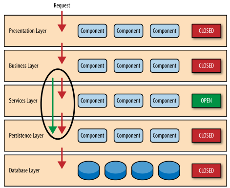 所以有时候你会创建一个开放的层。这意味着上一层可以绕过这一层直接访问下一层。