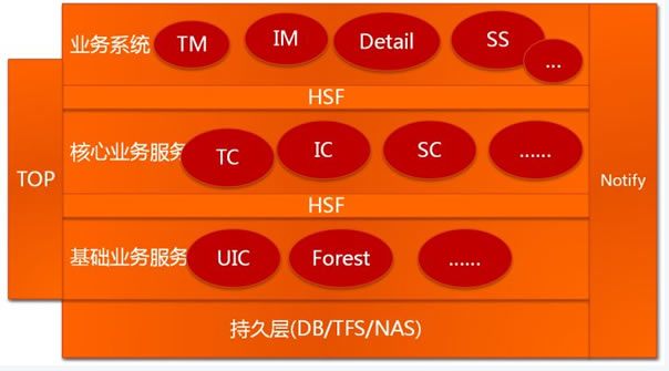 这是一个标准的分层的架构。每一层中又可以详细的分成更细的层,比如服务层。