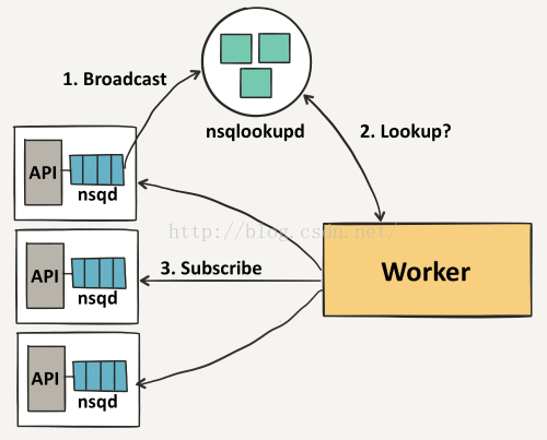 接口用于轮询。为话题引入一个新的消费者,只需启动一个配置了 nsqlookup 实例地址的 NSQ