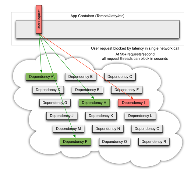 当其中的某一个系统发生延迟,并阻塞用户请求时,如下图: