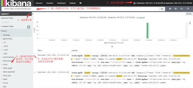 Fields)。通过添加可用字段到选中字段集合列表中来改变 Kibana 右侧的日志表格呈现。
