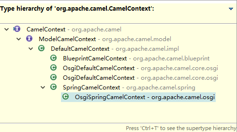 看来CamelContext是挺重要的,它基本将Camel应用程序运行所需要的所有基本信息都记录在案。另外,Apache