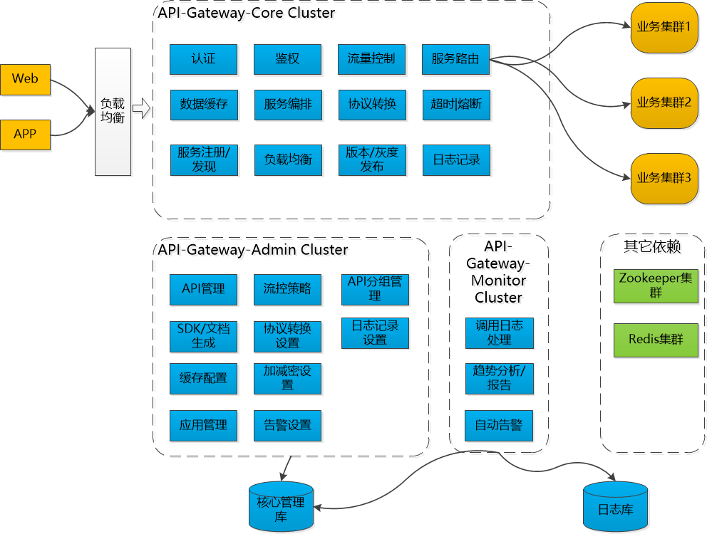 Gateway-Monitor 负责收集监控日志、生成各种运维管理报表、自动告警等;
