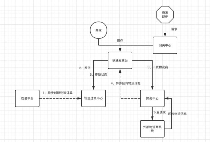 随着用户量和入驻商家的不断增加,小明成功完成了新一轮融资,公司的品牌也开始得到加强,原来入驻小明的都是一些个体户商家,现在陆陆续续有一些中等商家也希望入驻。由于中等商家往往有自己的ERP,他们不太愿意用外部系统,因此他们希望可以把我们的物流平台和他们的ERP进行对接。