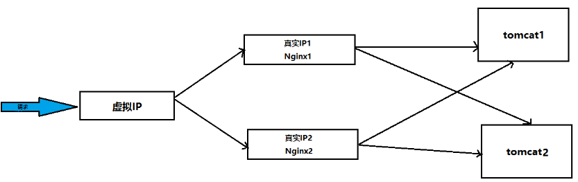 这张图的意思是,我们使用keepalived来管理两台设备的Nginx,并虚拟出一个IP,我们现在两台装有Nginx的设备分别是192.168.101.3和192.168.101.4,那么我们可以虚拟出一个192.168.156.xx的IP,外界请求直接访问虚拟IP而不是真正的Nginx,让虚拟IP去访问提供服务的Nginx(注意:高可用是指同一时间提供服务的只有一台设备,提供服务的设备挂掉之后,备份服务器便开始提供服务),然后再由Nginx去访问tomcat。