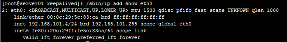 将主nginx的keepalived停止或将主nginx关机(相当于模拟宕机),查看主nginx的eth0: