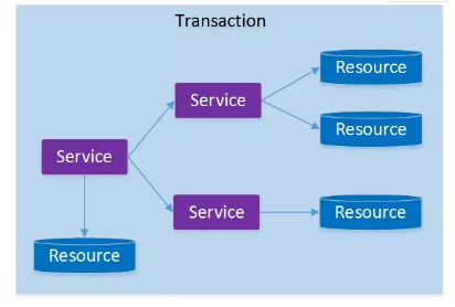 架构服务化以后,事务的概念延伸到了服务中。倘若将一个单一的服务操作作为一个事务,那么整个服务操作只能涉及一个单一的数据库资源: