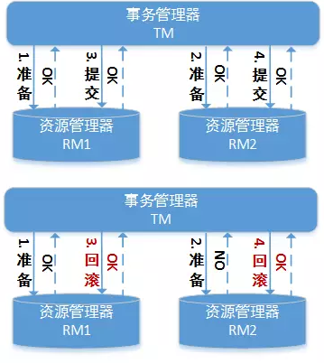 RM 预提交失败,则 TM 通知各 RM 回滚。