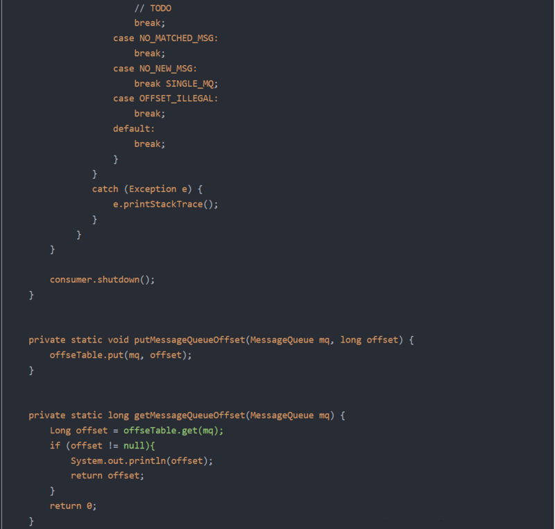 ÈçÒÔÉÏ´úÂëËùʾ£¬µ±Ä³¸ö¶ÓÁеÄÏûÏ¢Êý¶Ñ»ýµ½ 100000 ÌõÒÔÉÏ£¬Ôò³¢ÊÔ¶ªÆú²¿·Ö»òÈ«²¿ÏûÏ¢£¬ÕâÑù¾Í¿ÉÒÔ¿ìËÙ×·ÉÏ·¢ËÍÏûÏ¢µÄËÙ¶È