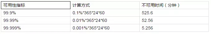 为此,对应用的可用性程度一般衡量标准有三个9到五个9。