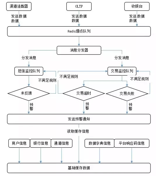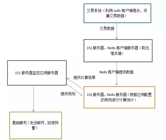 要做到实时分析,又不影响交易系统的响应时间,我们在系统各个模块中通过redis实时做数据埋点,然后将埋点数据汇总到分析系统,分析系统根据规则进行分析报警。