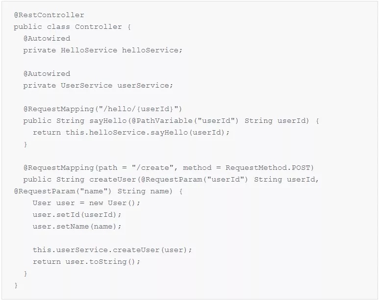 User 模型的接口;另外,还存在一个 HelloService,其调用 UserService 并返回一条问候信息;之后,由