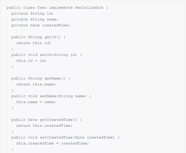 User 模型是一个标准的 POJO,实现了 Serializable 接口(因为模型数据要在网络上传输,因此必须能够支持序列化和反序列化)。为了方便控制台输出,这里覆盖了默认的