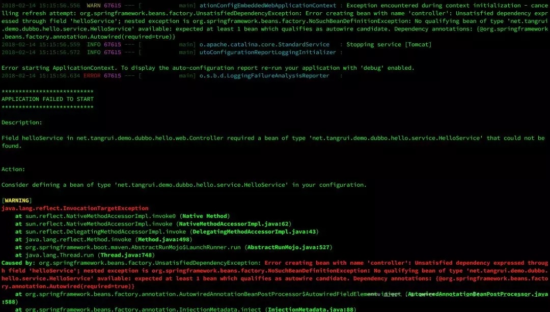 helloService 字段需要一个类型为 net.tangrui.demo.dubbo.hello.service.HelloService的