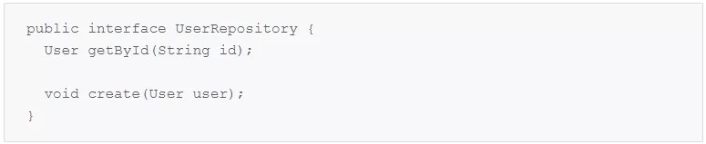 UserRepository 接口是访问 User 模型的 DAO,为了简单起见,该接口只包含两个方法: