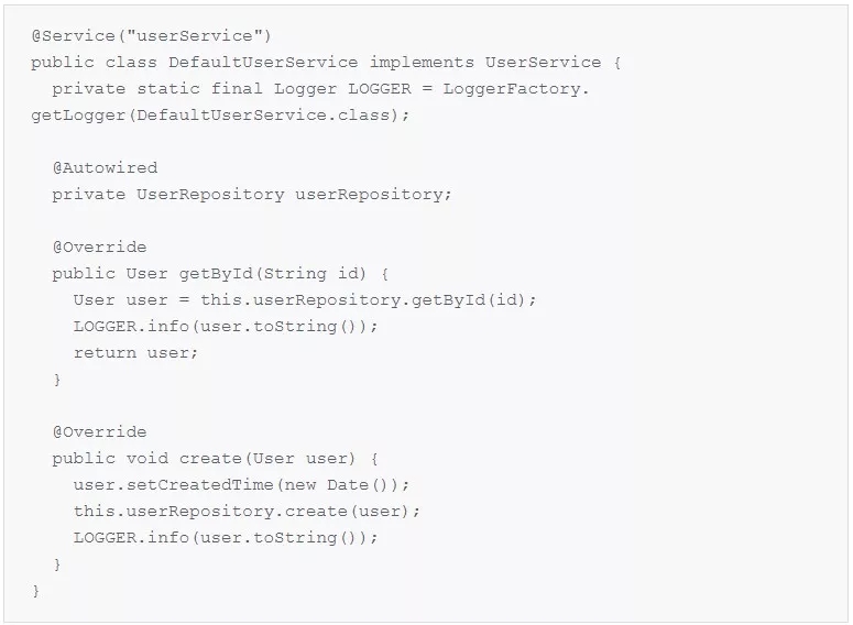 DefaultUserService 是 UserService 接口的默认实现,并通过 @Service