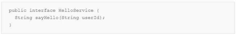 HelloService 接口只提供一个方法 sayHello,就是根据传入的 userId 返回一条对该用户的问候信息。