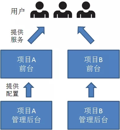 前台、后台、用户之间的关系,可以用下图简单表示: