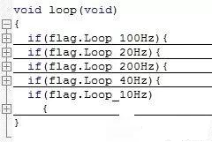 将整个飞控代码分成了几个周期分别为5ms,10ms,25ms、50ms和100ms的任务。而每个任务的时间标志flag是由一个时间片函数进行管理的。设了一个tick节拍,2.5ms一次,所以比如计数达到2次,则5ms的定时任务即可执行。