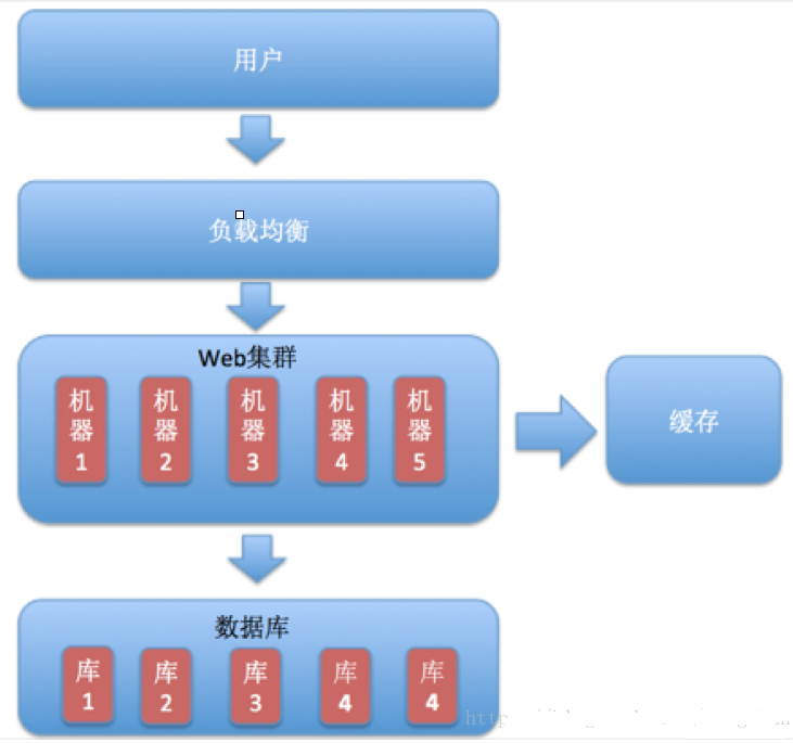 这时候WEB集群内每台机器部署的代码是一样的,但是通过集群的方式提升了整个应用的支撑能力。一般来说负载均衡有软件的和硬件的。一般硬件的有F5,软件的有apache,LVS,