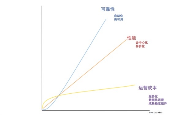 随着机器数量的增加,性能一定是线性增加、可靠性成指数型增长、运营成本要保持对数级上升。这些才是真正互联网架构的关键特征,如果系统不能很好的解决这些问题,它会是一个无法向上扩展的系统,那么就无法满足未来用户的增长需要。