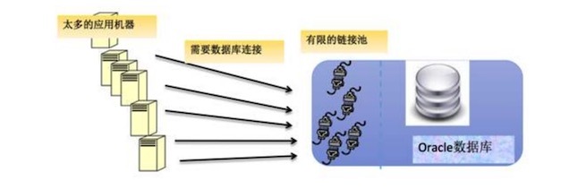 当时后端 Oracle 的连接池有限,约 8000 个左右,一旦超过就会出现问题。因为超过数量,链接占的内存会非常大,且连接数单点风险系统很高。