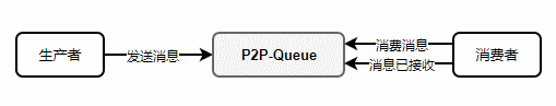 点对点(p2p)模式有三个角色:消息队列(Queue),发送者(Sender),接收者(Receiver)。发送者将消息发送到一个特定的队列中,等待接收者从队列中获取消息消耗。