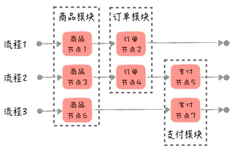 业务架构师的职责:把业务流程和节点打散,按照业务域的纬度来划分系统模块,并定义这些模块之间的关系,最终形成一个高度结构化的模块体系。