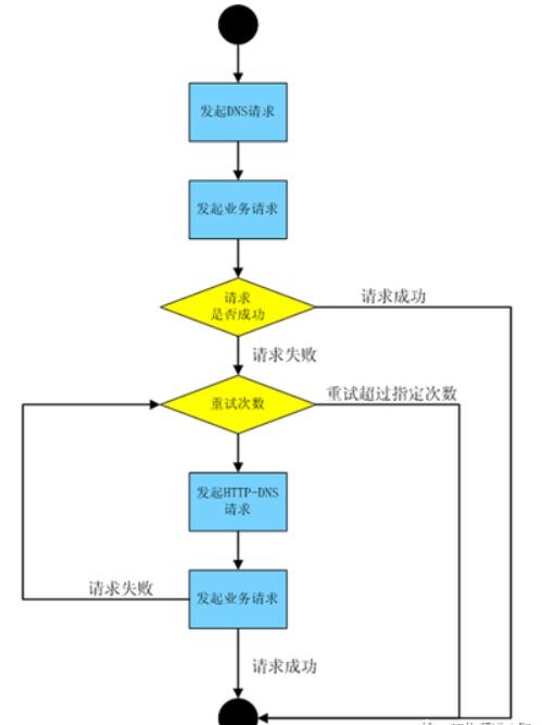 具体的做法为:正常情况下我们通过传统 DNS 完成业务请求,异常重试的时候通过 HTTP-DNS