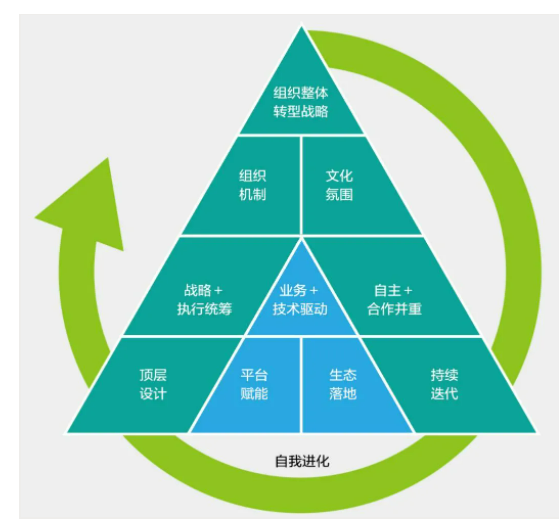 贯彻3个核心原则:将“战略与执行统筹,业务与技术双轮驱动,自主与合作并重”三个核心原则贯穿到转型全过程,保证转型始终在正确的轨道上。