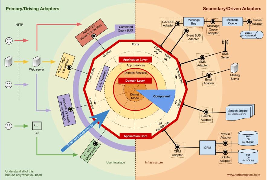 应用的使用场景和用例都是独立描述的。它决定了我们所需要哪些第三方服务。我们让外部服务更适应我们的需求,这让我们有更多的空间可以选择合适的第三方服务。比如,现在我们调用的支付系统涨价了,我们可以很快的换掉它。