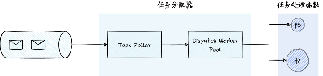 pool 要能感知到该状态,保持相对稳定的分发速度;当任务处理完毕后,work pool 要缩容,将分发能力释放给其他任务处理函数。