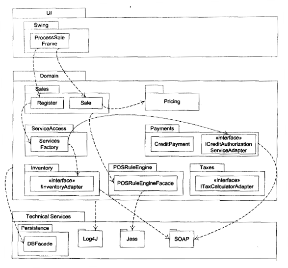 m logical architecture :是软件的宏观组织结构,它将软件类组织为包(或命名空间)、子系统和层等。